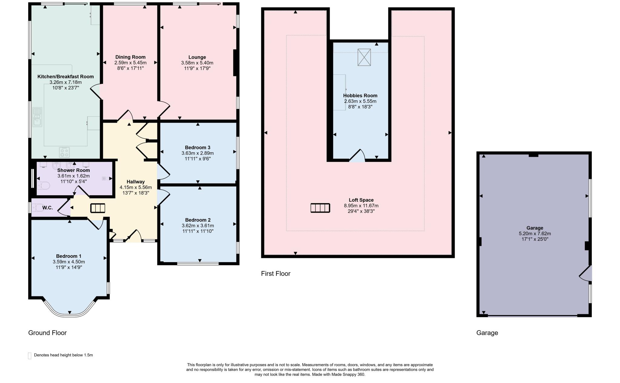 This is a detached bungalow in West Parley, Dorset, offered by Goadsby. The property features three bedrooms and one bathroom. While the kitchen and bathroom have been modernised, other areas of the house would benefit from updating. The property includes a detached garage and a well-maintained garden. The location is desirable, with access to local schools and amenities, but the price appears high for the square footage compared to the local average. The unfinished room above the garage offers potential for further development.