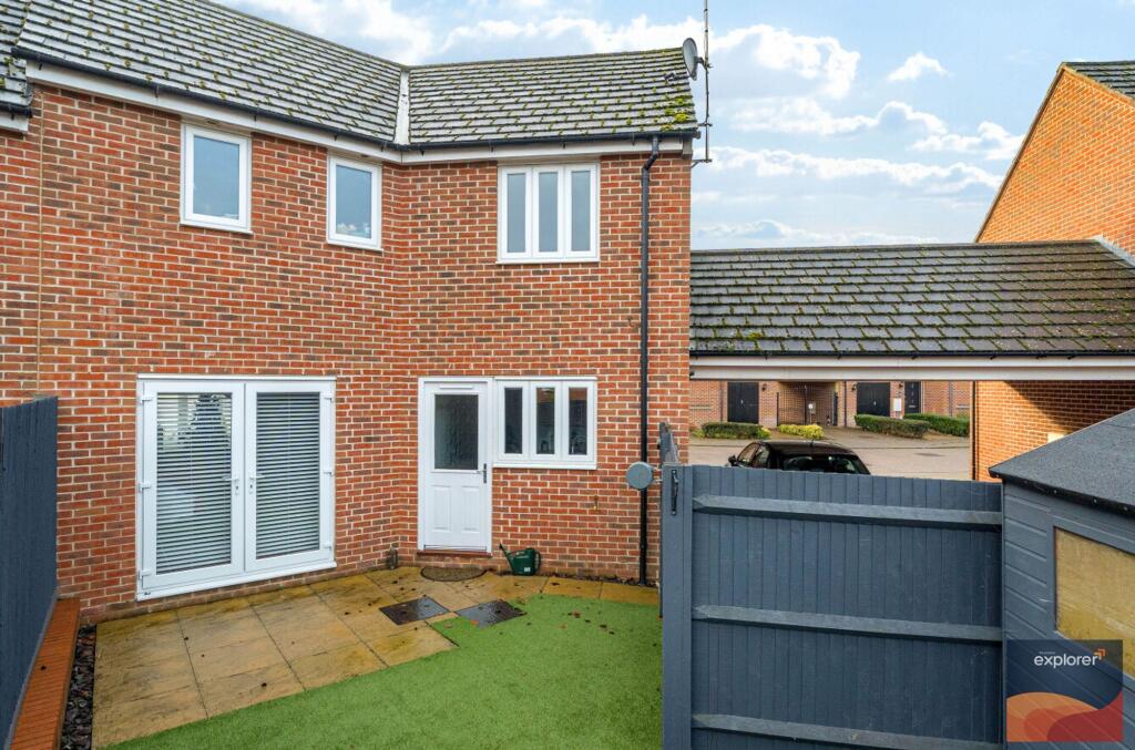 This is a modern semi-detached property located in Marnel Park, Basingstoke. The house features 3 bedrooms and 2 bathrooms. The property is conveniently located near schools and transportation links. The interior appears to be well-maintained. The garden is small and includes a patio and shed.