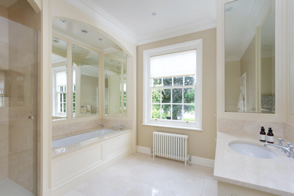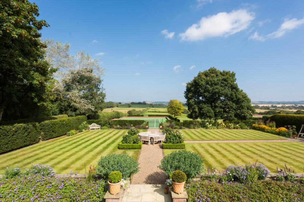 An exceptional classic Grade II listed Georgian style home seamlessly blending period grandeur with modern living, set amidst sophisticated outdoor spaces with expansive manicured gardens, lawns, paddocks, and a private tennis court.