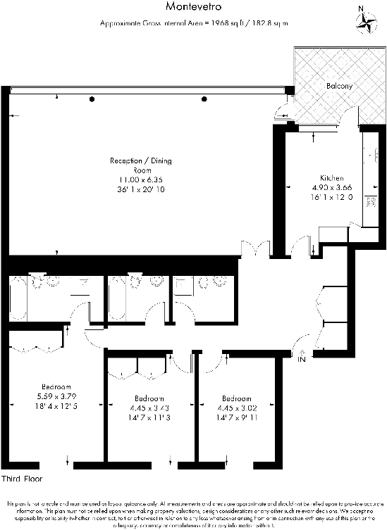 A spectacular lateral three bedroom apartment | 3rd floor | The Montevetro Building | Westerly views across the river | Private terrace | 24 hour security | Tennis Court | Gym | Car parking
