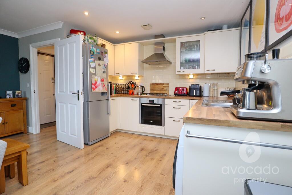 Sherrard Way is a small cul-de-sac of homes built in 2009. This one is a first floor two double bedroom apartment presented in lovely order, with great space, a Juliette balcony off the kitchen/living/dining area and there's an en-suite and bathroom too. Outside there's also allocated parking.