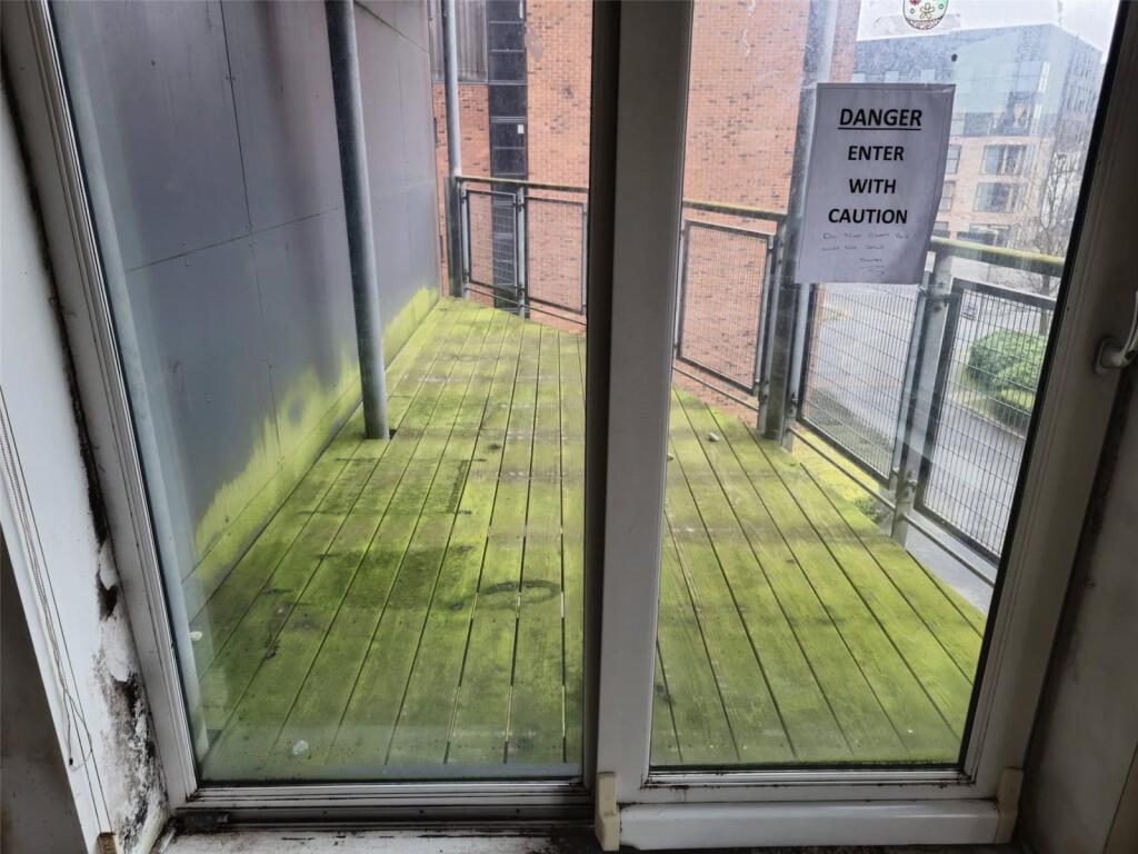This property is a two-bedroom apartment located in Warrington, Cheshire. The apartment is in need of some renovation work, as evidenced by the photos showing damaged flooring and walls. There is a small balcony/deck area. The location is convenient, with nearby transportation links and schools. However, the provided pricing information is limited and does not allow for a comprehensive price per square foot analysis. More data is needed to accurately assess the list price.