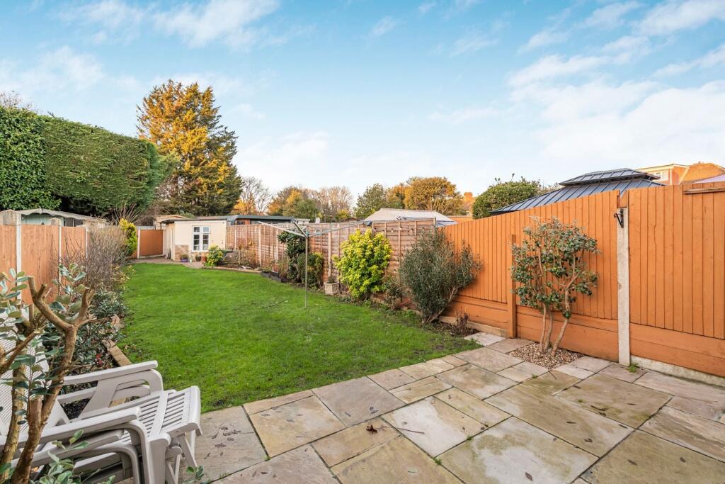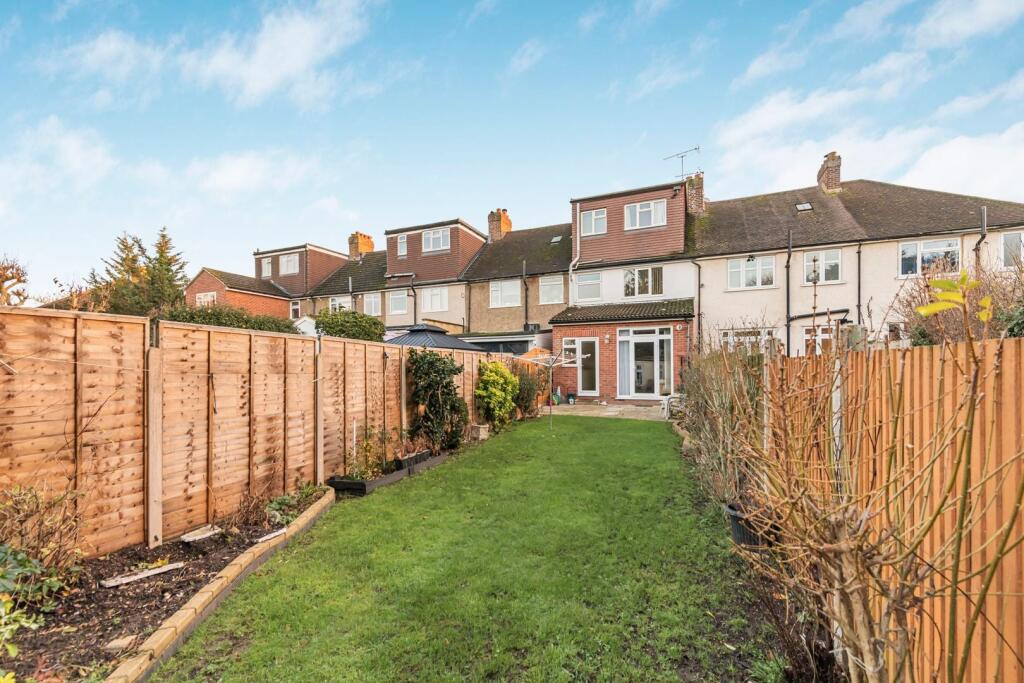 This is a three-bedroom terraced house in Ashford East, Spelthorne. The property features two bathrooms, a well-maintained interior, and a good-sized garden with a shed. The location is convenient, with Ashford (Surrey) station and St Michael Catholic Primary School nearby. The property is in reasonable condition, with a modern kitchen and bathrooms. The list price of £500,000 is reasonable compared to the average price in the area.