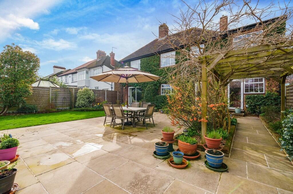 GUIDE PRICE: £1,150,000 - £1,175,000 A large 5 bedroom detached house positioned in one of Sidcup´s most desirable roads. This statement house is well set back offering off street parking for several cars, and has a stunning rear garden with 2 summerhouses. The area is highly soug...