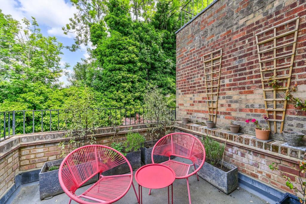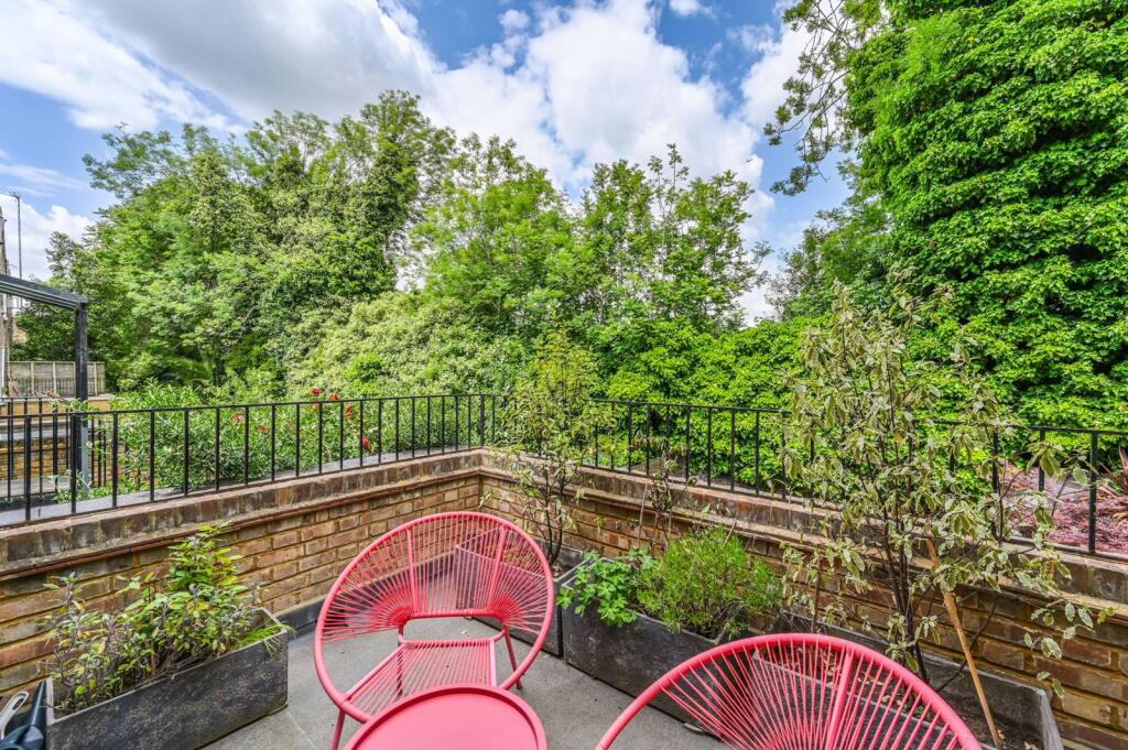 With stunning interiors throughout and a bright spacious layout over the raised ground floor, this wonderful one bedroom flat is situated within an attractive period conversion, benefiting from a private roof terrace.