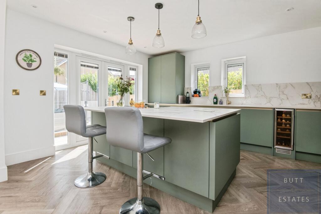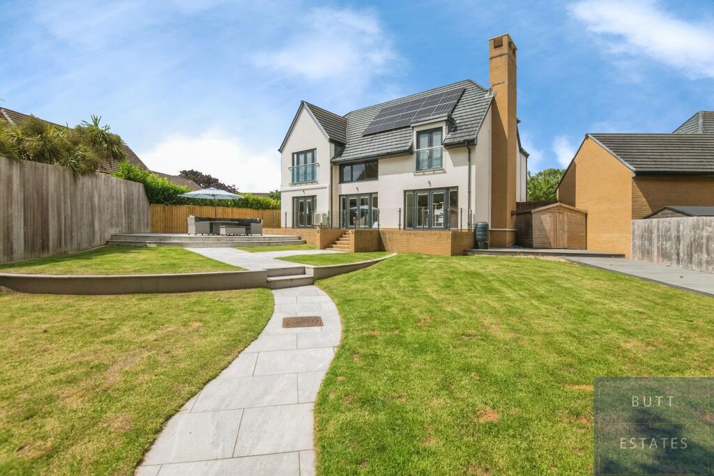 The Lodge - An extraordinary, showpiece home in an exclusive gated setting. Boasting over 2,300 sq ft of luxury, vaulted ceilings, air con throughout, designer kitchen, landscaped garden with luxury cabin, and a triple garage. A rare blend of style, space and prestige.