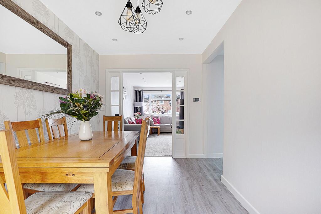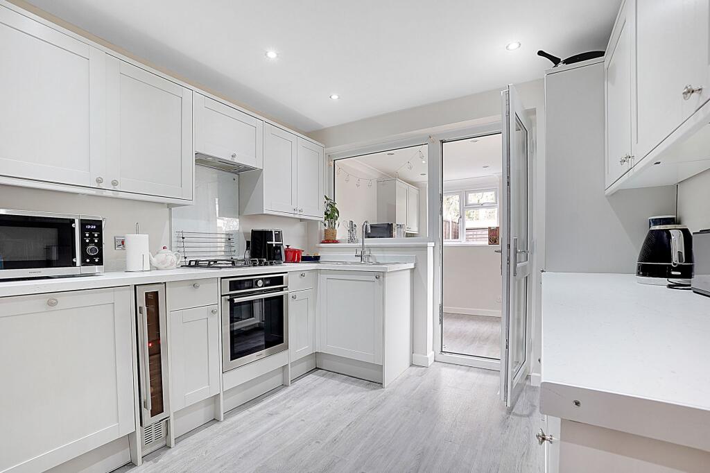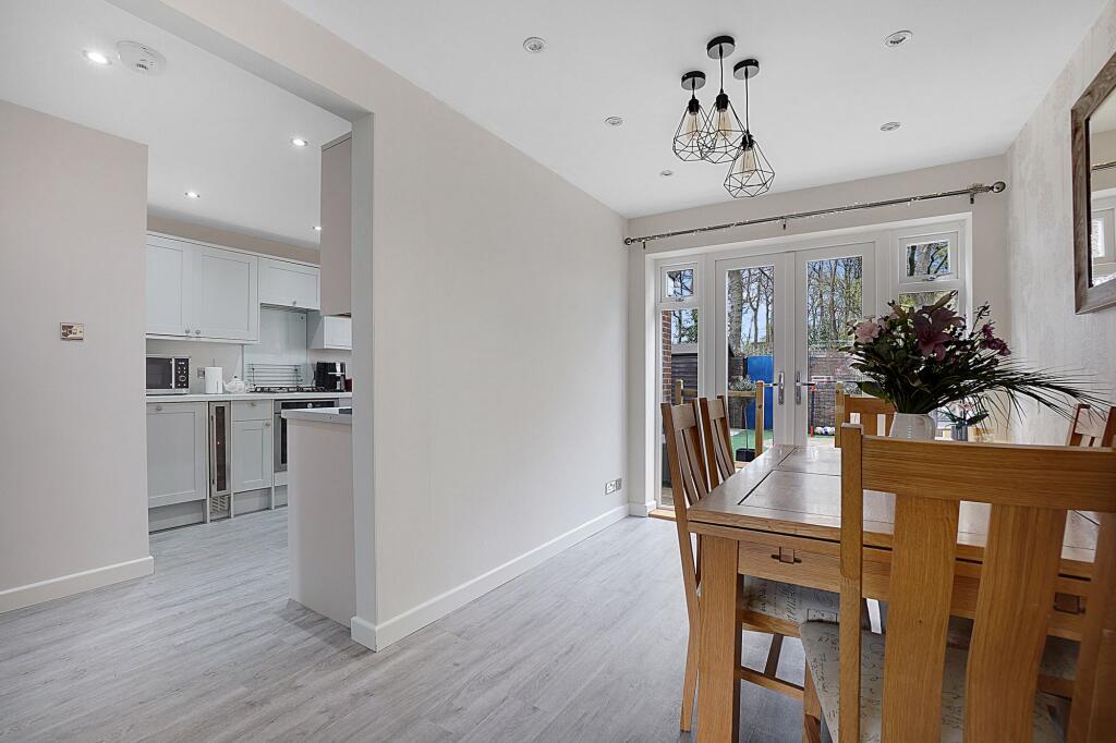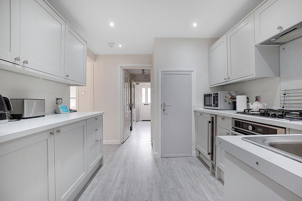 Charming 3-bed mid-terraced house with modern kitchen, 2 reception rooms, utility room, cloakroom, contemporary bathroom, landscaped garden, and driveway for multiple vehicles.