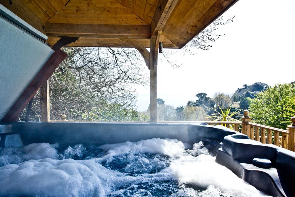 A substantial six-bedroom detached house in the desirable Wellswood area of Torquay, Devon. The property is in good condition, with period features and modern amenities. It benefits from a generous plot size, including a well-maintained garden and an outdoor swimming pool with a bar and hot tub area, offering stunning sea views. The property is situated in a sought-after residential area, with proximity to local schools and amenities.