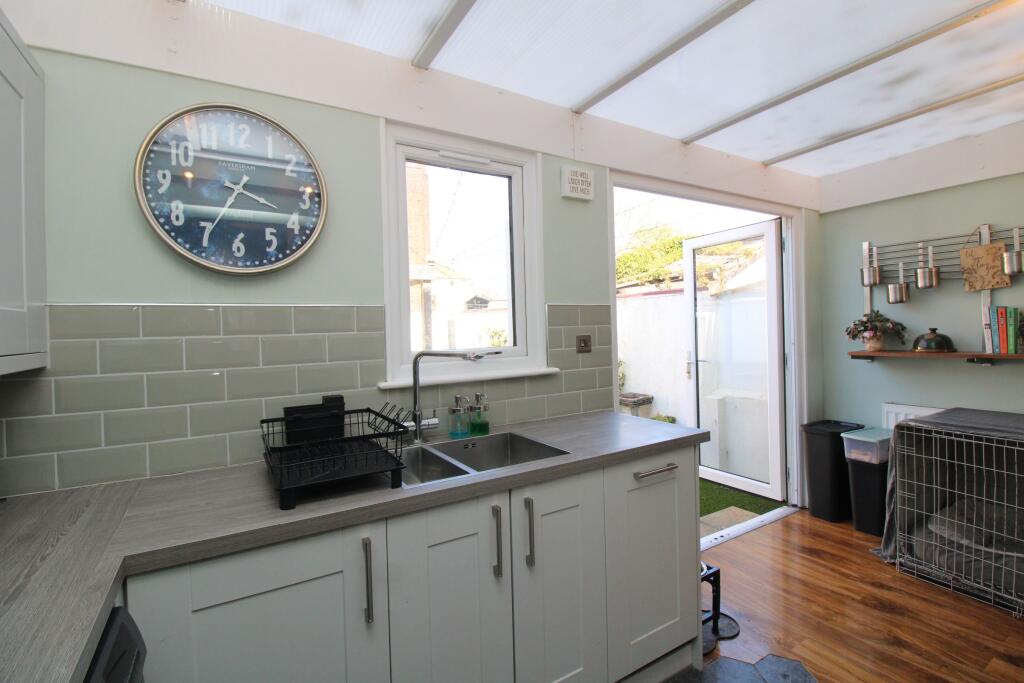 The property is a 3-bedroom terraced house located on Orient Road in Preston, Paignton, Devon. It benefits from a relatively small enclosed rear garden. The property appears to be in good condition, having undergone some modernisation, while retaining some traditional features. The kitchen appears recently updated, and the property is presented well throughout. There is a good-sized living/dining area.