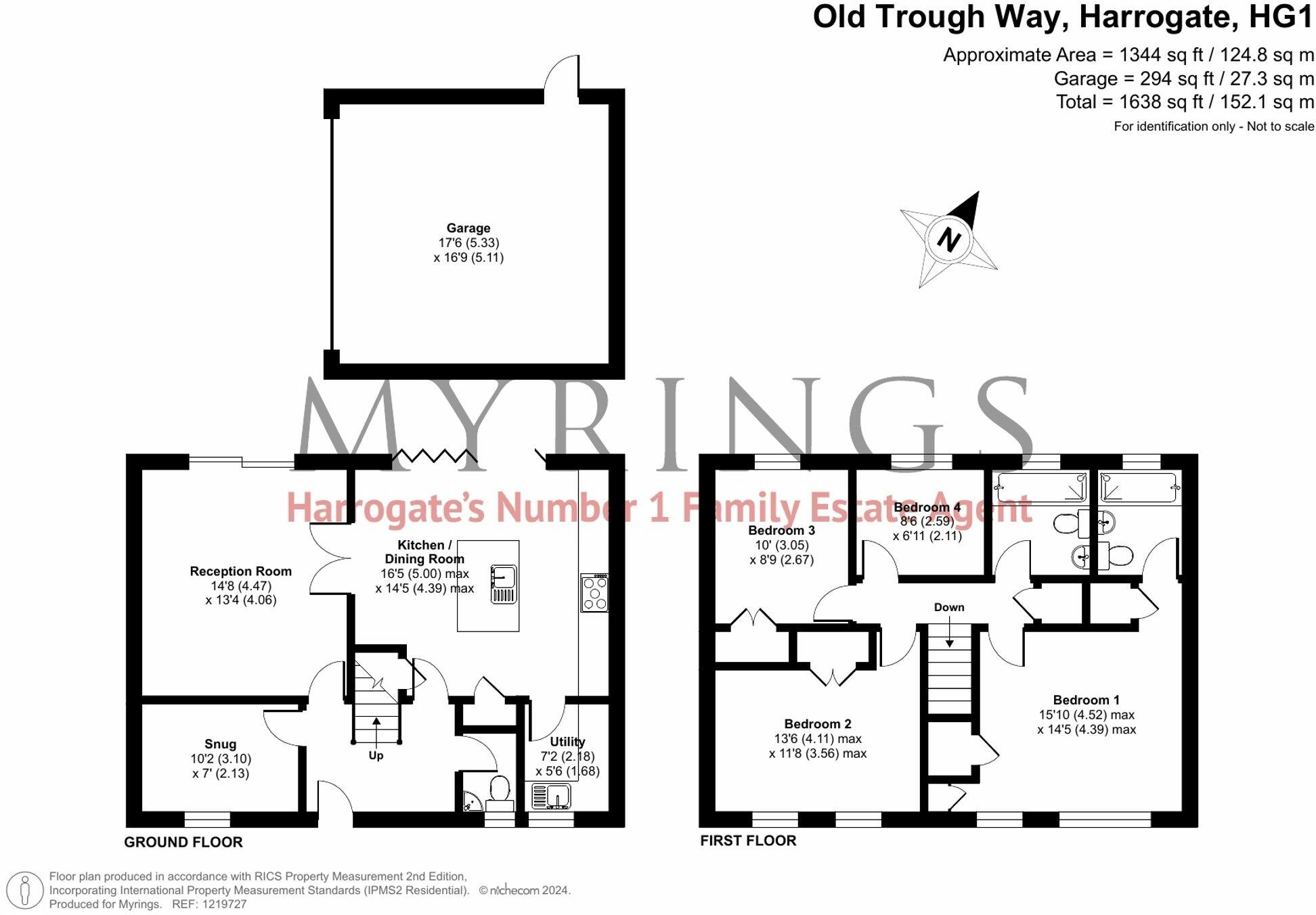 This property is a 4 bedroom, 2 bathroom detached house located on Old Trough Way in Harrogate, North Yorkshire. The list price is £475,000, and the property has a plot size of 1,344 sqft and an internal area of 1,374.31 sqft.