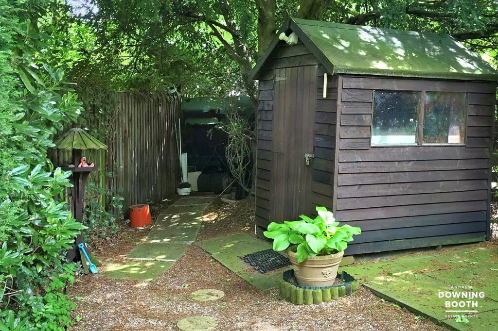 The property boasts a substantial garden, shown in the pictures to be a mature and private space. This is a considerable advantage. There is also a shed providing additional outdoor storage.