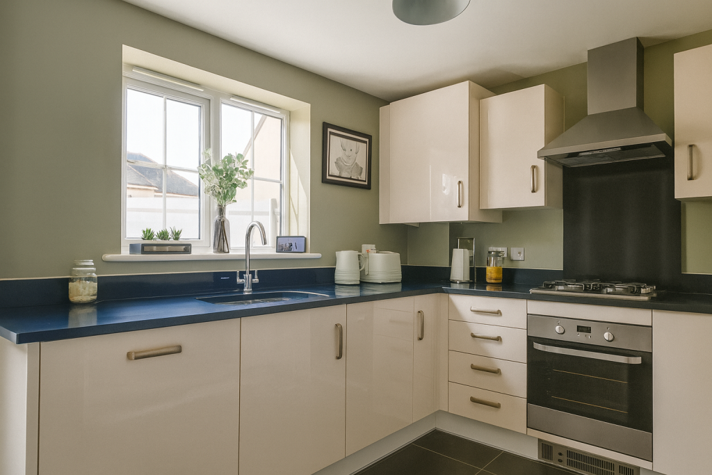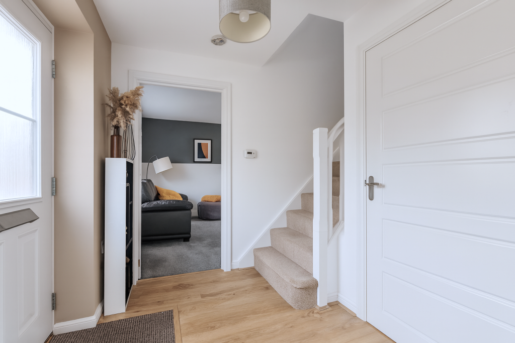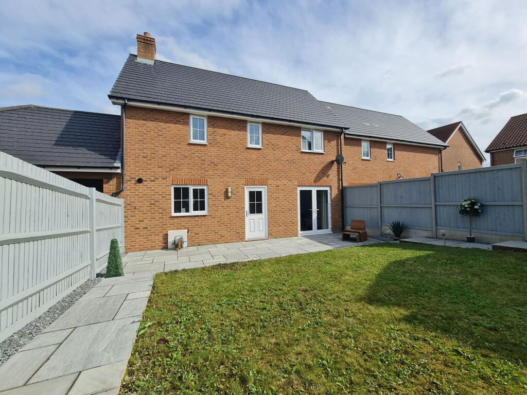 This is a three-bedroom semi-detached house located in Elliot Way, Sholden Fields, Deal. The property benefits from three bathrooms and has a square footage of 1,148.00. The house appears to be in good condition, with a modern interior and a well-maintained exterior. It also features a garden with a shed and a patio area. The location is residential, with nearby schools and transportation links. The asking price of £325,000 seems reasonable, considering the property’s size, condition, and location. The property also benefits from off street parking.