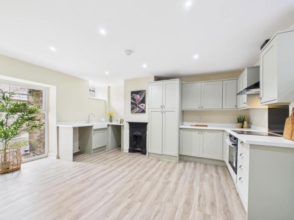 This is a four-bedroom barn conversion in Bowes, County Durham. The property appears to be in good condition, with a modern interior and a garden. The location is rural, which may appeal to those seeking a quiet lifestyle. The property is within walking distance of an ‘Outstanding’ rated primary school. The price seems reasonable compared to the local market. The property retains some traditional features, such as exposed beams and a fireplace, while also incorporating modern design elements.