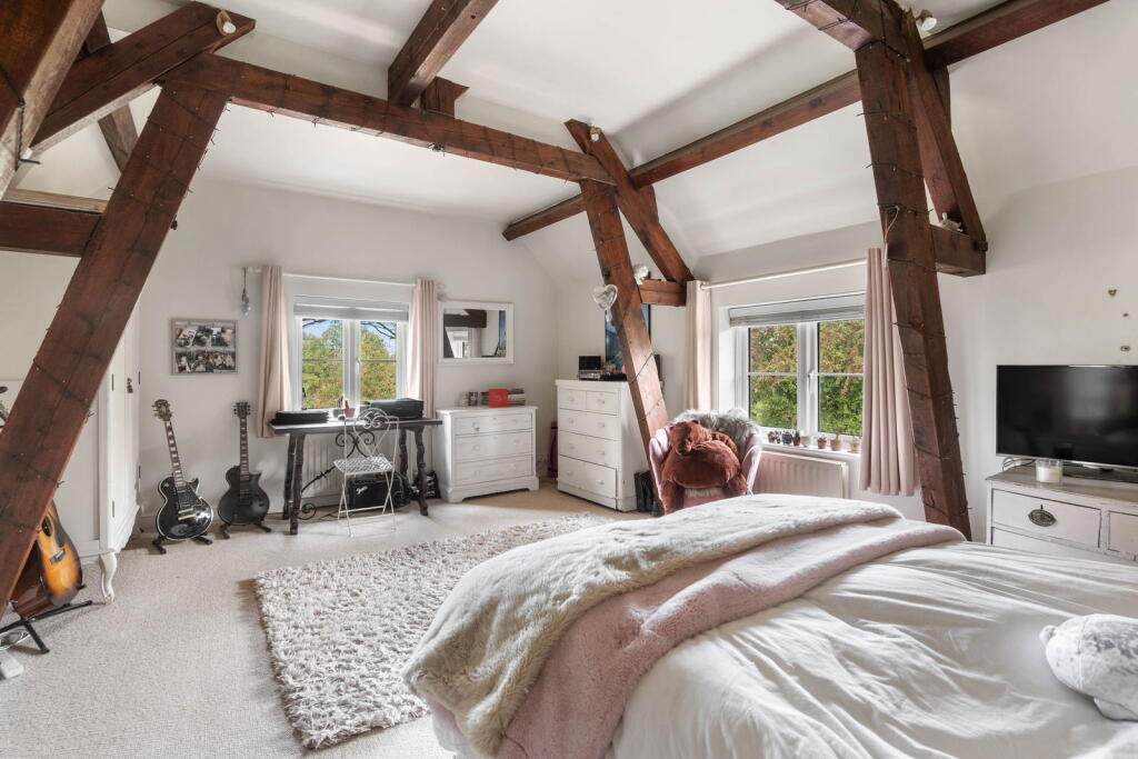 Bell Barn is a four-bedroom house located in Birlingham, Worcestershire. Marketed by Allan Morris Worcester, the property benefits from a modern interior, a well-maintained garden, and period features. The house is situated in a rural location, offering a quiet lifestyle, but is a considerable distance from local amenities. The property is listed for £875,000, which is above the average price per square foot for the area, but this reflects the property’s size, condition, and desirable features.