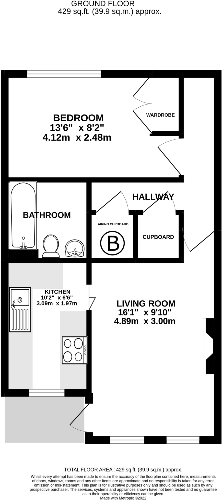 Harringtons are pleased to bring to market this one double bedroom ground floor apartment. Inside you have a double bedroom with built in wardrobe space, bathroom with electric shower over bath, storage cupboard and a separate hot water cupboard, living room with a door leading out to the attract...