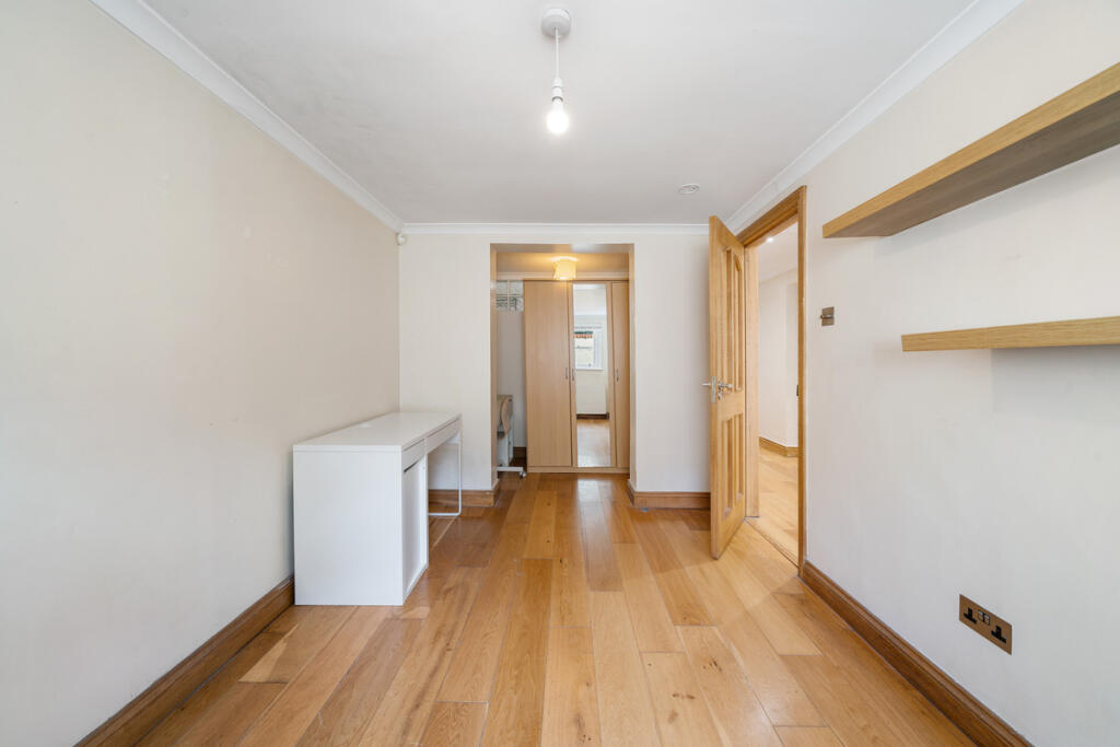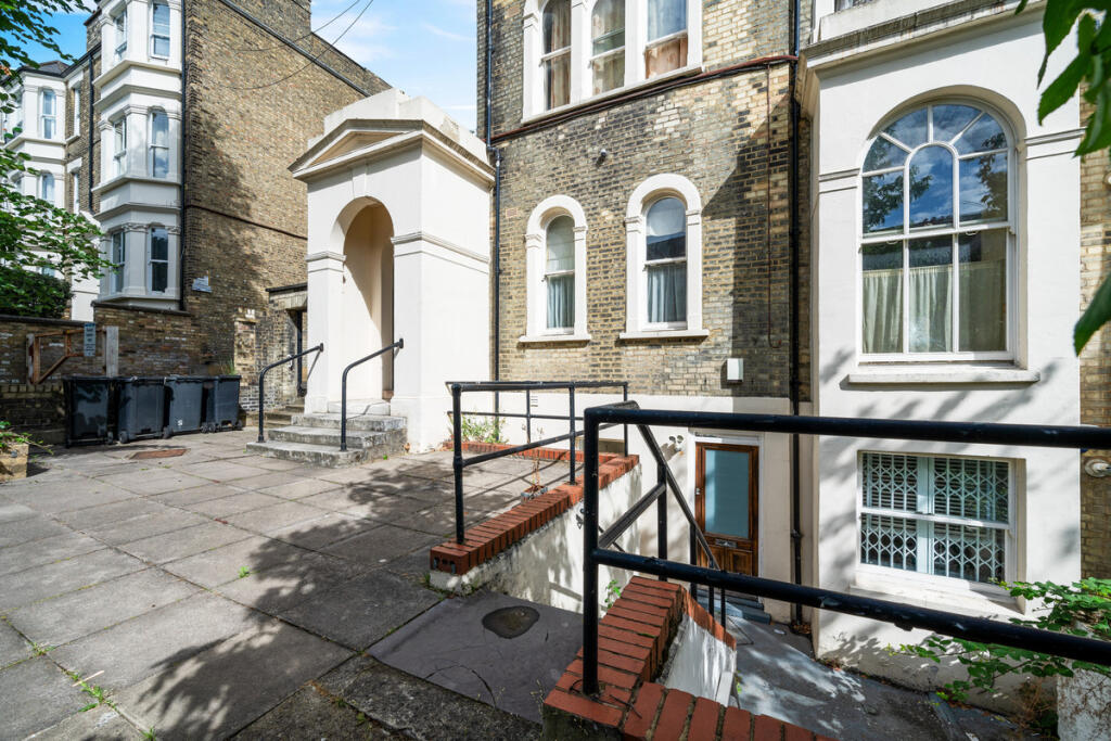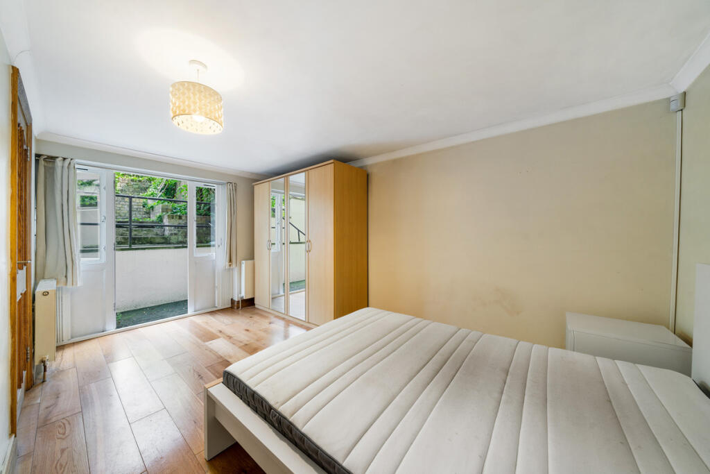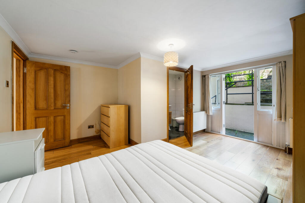 Spacious 3-bed flat on Cathcart Hill, Tufnell Park, set on the lower ground of a period conversion. Features include private patio, large reception, en suite, separate office/walk-in wardrobe, and access to a shared garden