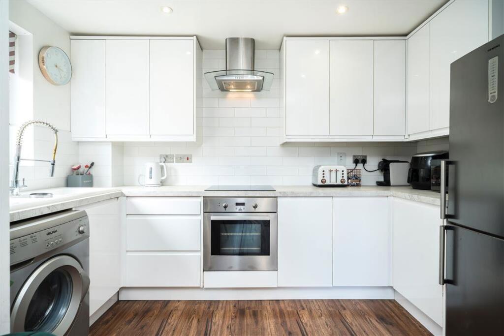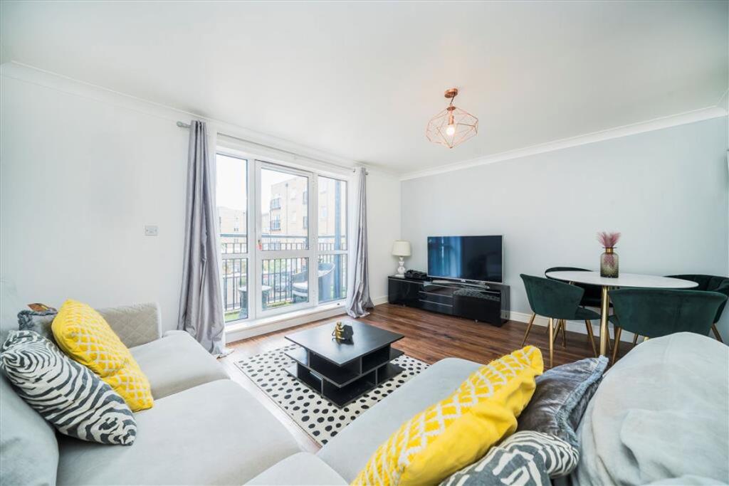 A modern, purpose built, two bedroom apartment offering a generous living space and set within a popular, secure development. The property has a large, semi-open plan living room with space to dine and a recently renovated, fully integrated kitchen. The property has two double bedrooms, the princ...