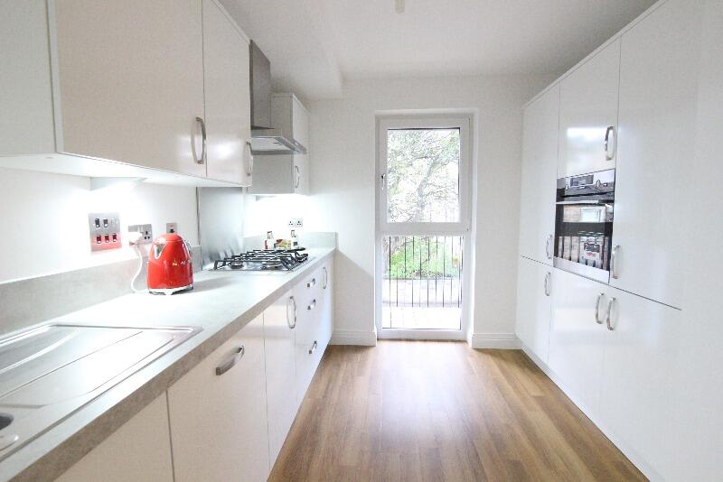 New build flat in modern development comprising of 2 double bedrooms (1 with e/s), f/f kitchen, lounge/dining room leading to balcony and main bathroom. Ample storage. Allocated private parking. Suitable for Professionals only. C/Tax Band: E
