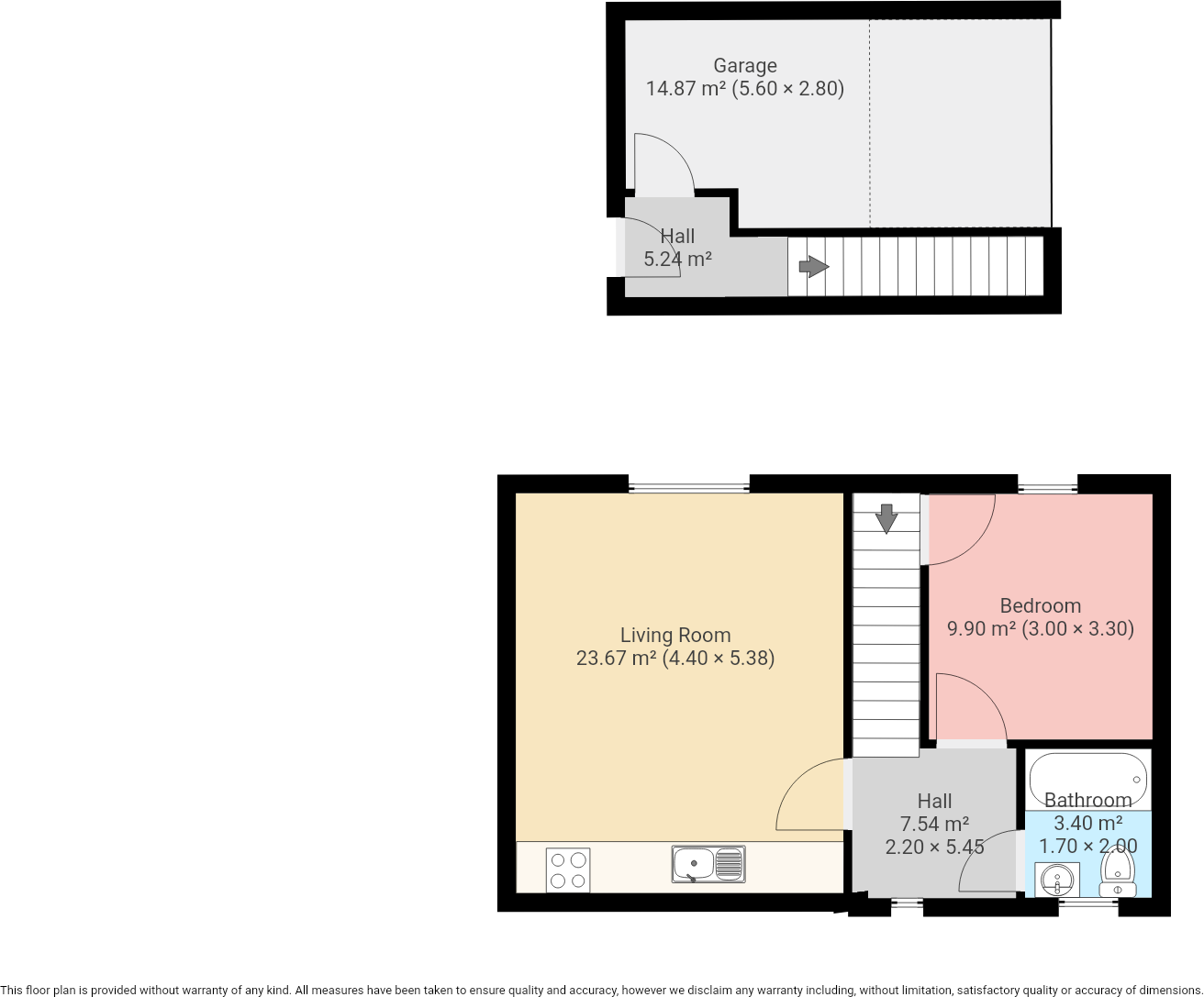 One bed top floor flat with private access and a garage now available to let
