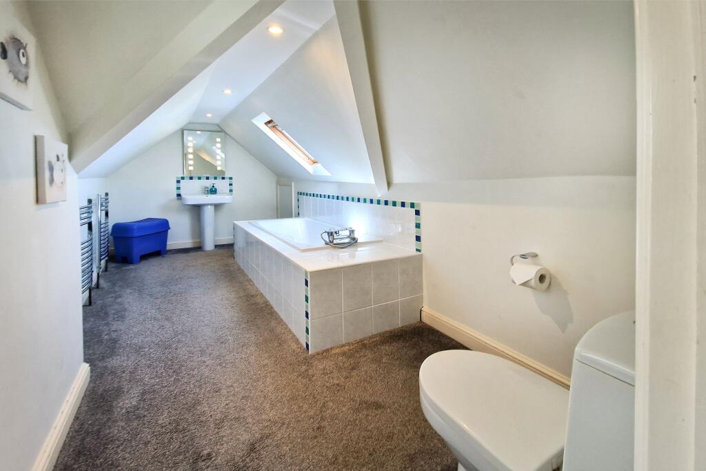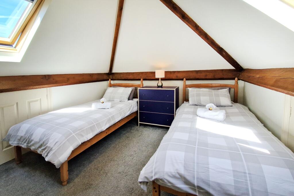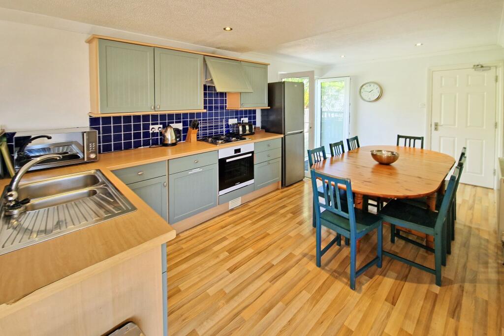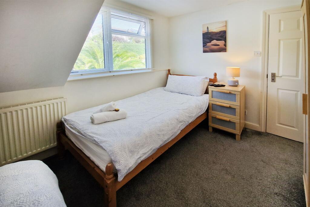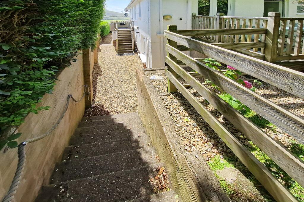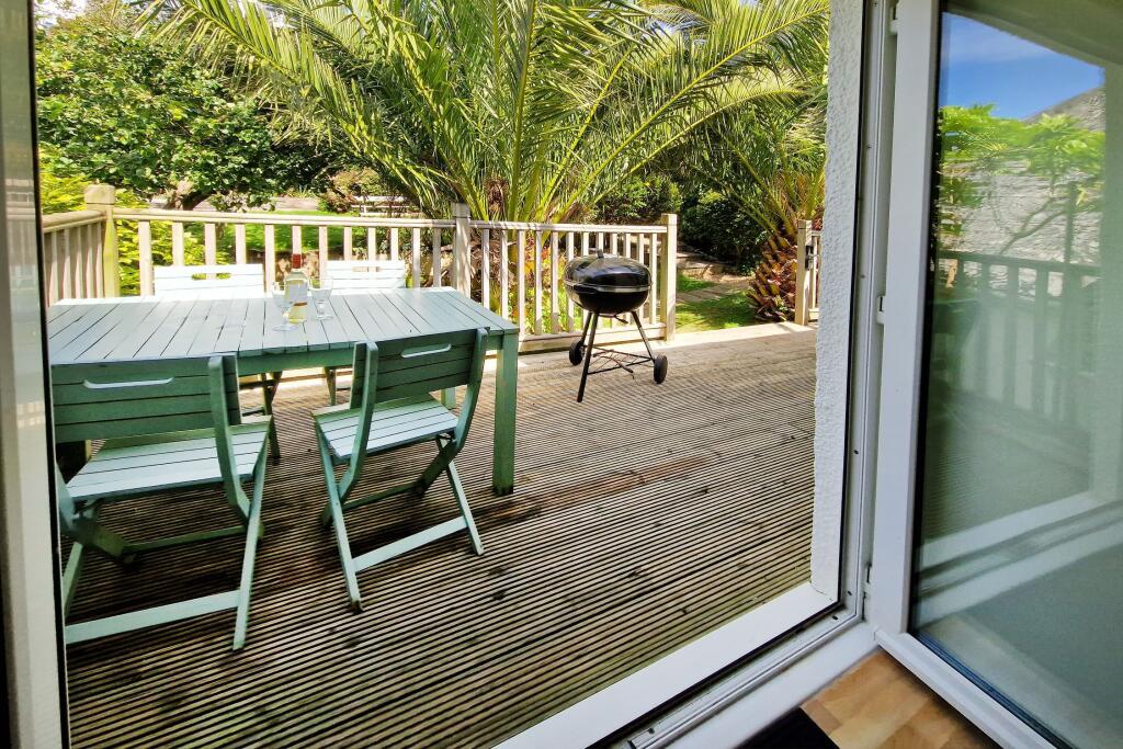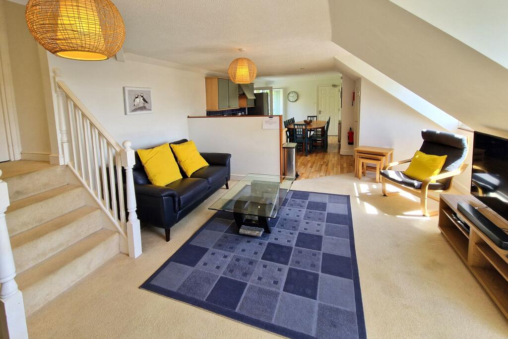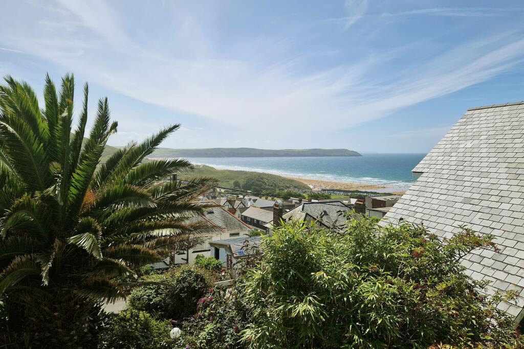 Lovely views across the village to the sea, sand and surf! This 4 bedroom, 2 en suite duplex apartment offers lawned garden, decked terrace and two parking spaces being an ideal holiday let (as presently) or equally suitable as family home/second home.