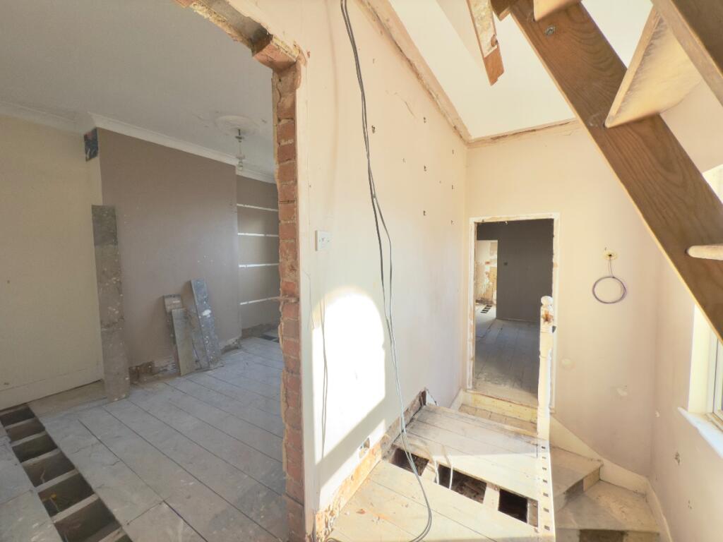 This property at 10 Holland Road, Clacton-on-Sea, is a 4-bedroom, 3-bathroom house currently listed for £270,000. The provided images show it is undergoing a complete refurbishment, with the interior stripped back to the walls and floors. The property needs extensive renovation, including plastering, flooring, plumbing, and electrical work. A substantial amount of work is needed. The location is not one of the top UK spots, however it does have good access to transport with a train station nearby, and the area benefits from a good secondary school located within walking distance. The exterior images show a terraced house with a small garden that appears to be in need of some attention. The lack of nearby property information prevents a definitive comparison on price. The property presents a high-risk, high-reward proposition for a buyer, depending on the extent of the renovation needed against the budget. A thorough survey and a detailed renovation cost estimate are essential before committing to a purchase.