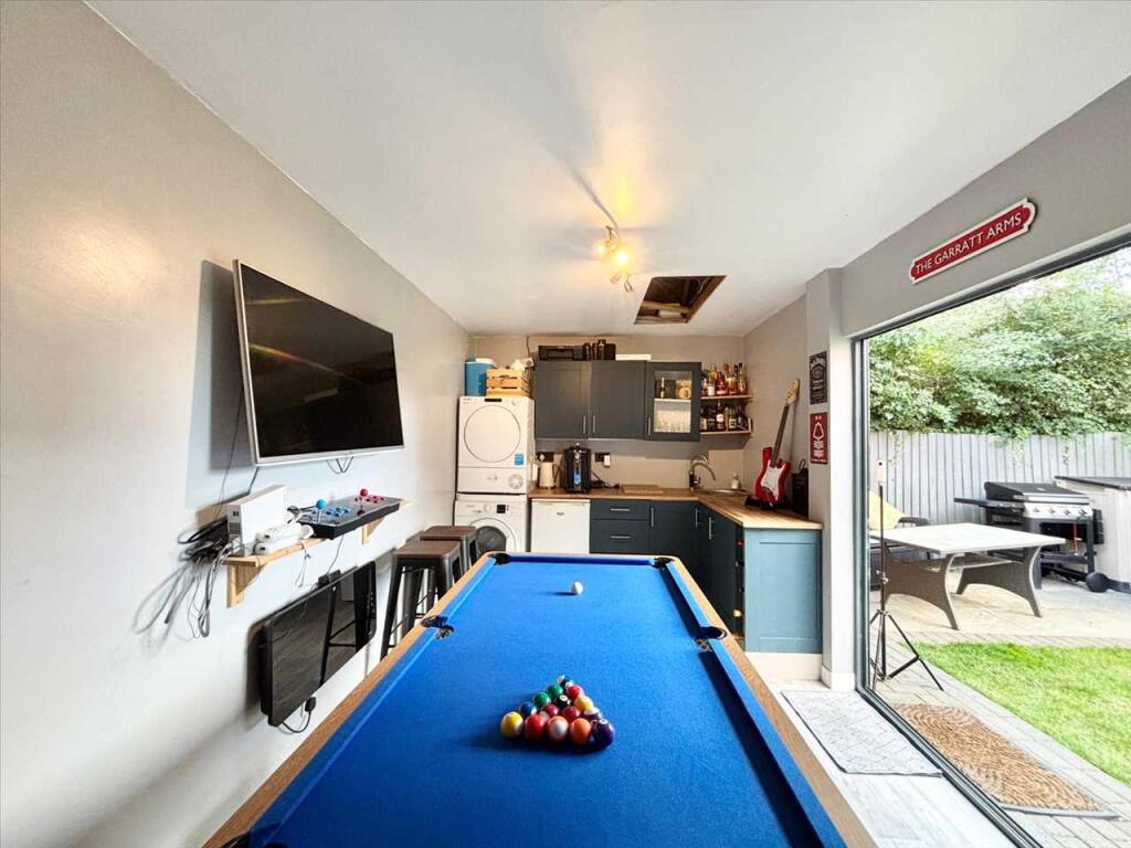 This beautifully presented four bedroom home offers the perfect blend of modern style and practical family living. Situated in a popular location, it boasts generous accommodation arranged over three floors, parking for three vehicles, and a versatile garage currently used as an entertainme (cont.)