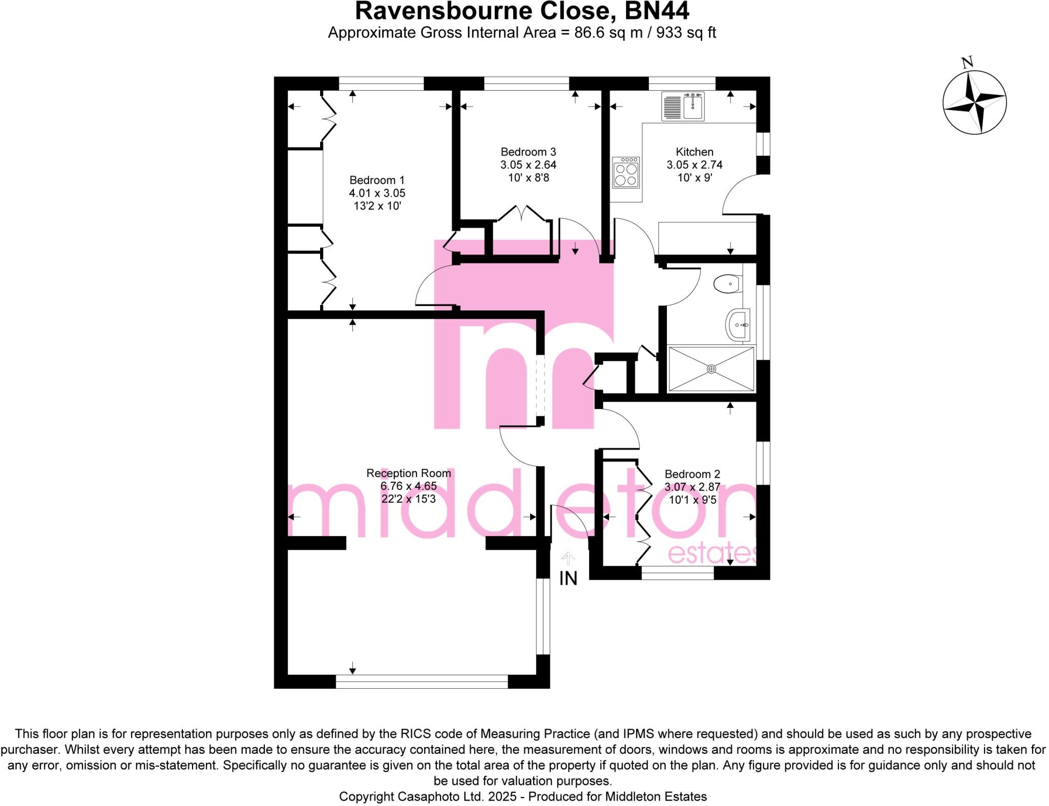 Ravensbourne Close is located in Shoreham-by-Sea, West Sussex. The property is a 3-bedroom house with 1 bathroom, and a total area of 733 sqft, situated on a 933 sqft plot. The list price is £550,000.