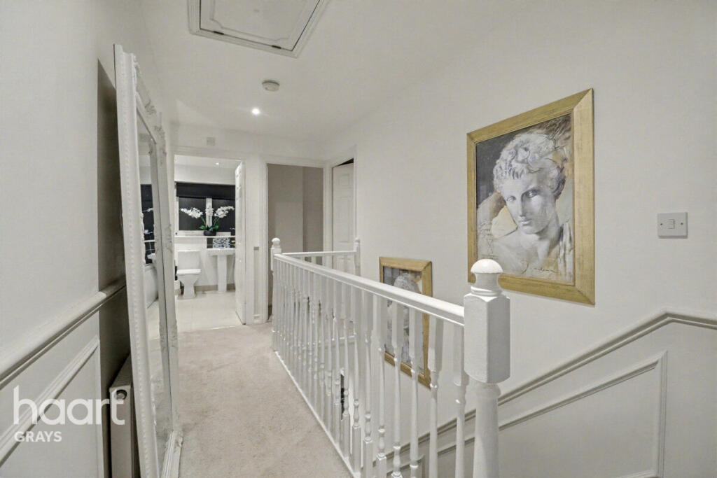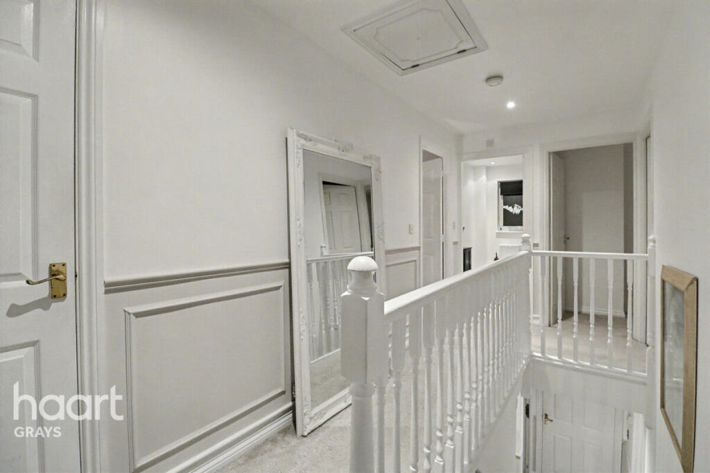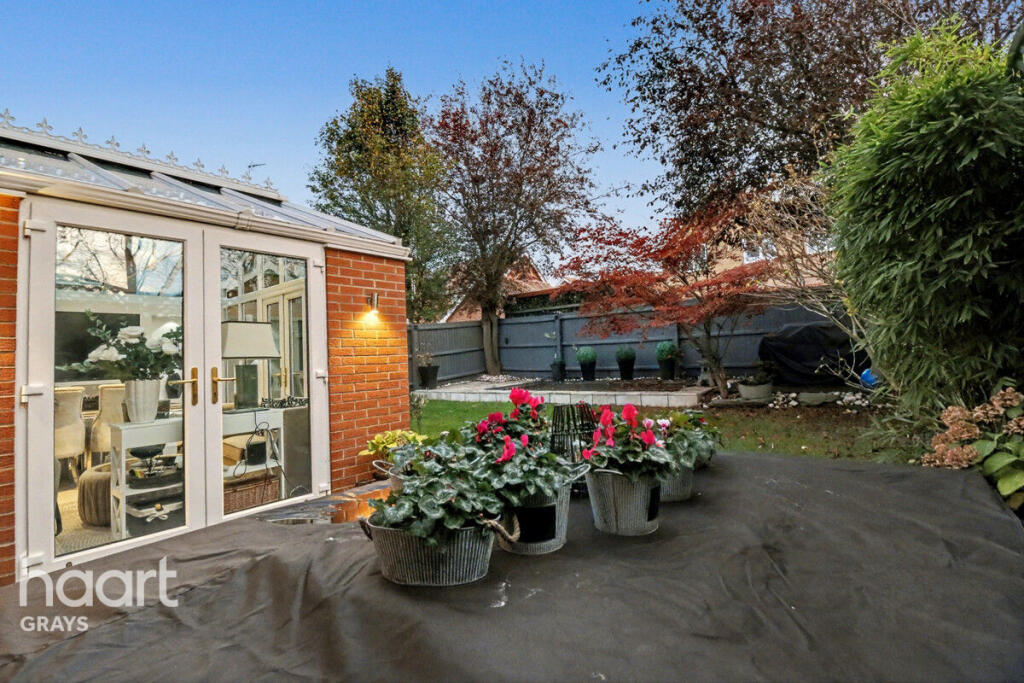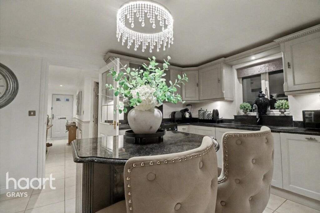 Beautiful 4 bed detached home in sought after Chafford Hundred. Features open plan kitchen, conservatory, spacious lounge, ensuite master, and converted garage. Close to station, schools, Lakeside, and A13/M25 links. Perfect family home, early viewing advised!