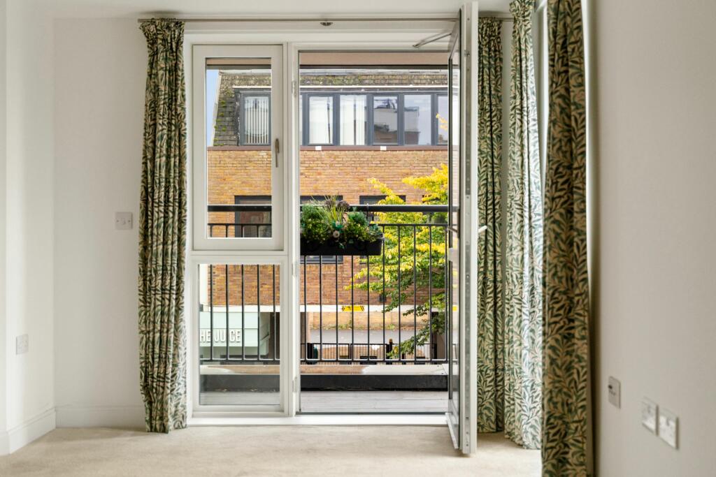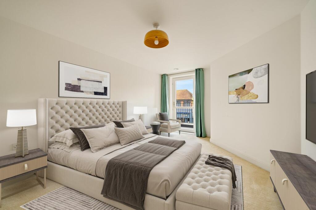 The apartment appears to be in excellent condition, with modern fixtures and fittings throughout. The images show a well-maintained interior and exterior. The location is also very good. It is situated on the High Street, which offers easy access to shops, restaurants, and other amenities. The proximity to several railway stations also makes it convenient for commuting. There is also a communal outside space.
