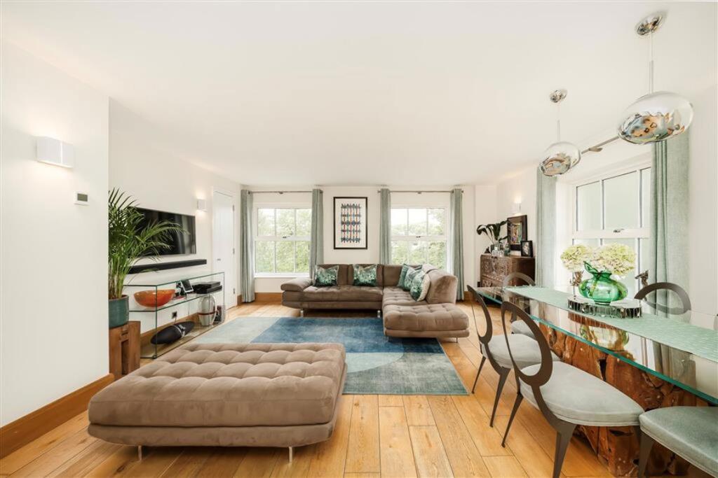 A rarely available three-bedroom duplex penthouse in Belsize Park, offering stunning views of the London skyline. The property features a spacious open-plan living area, three bathrooms, turnkey condition, and comes with a share of the freehold.