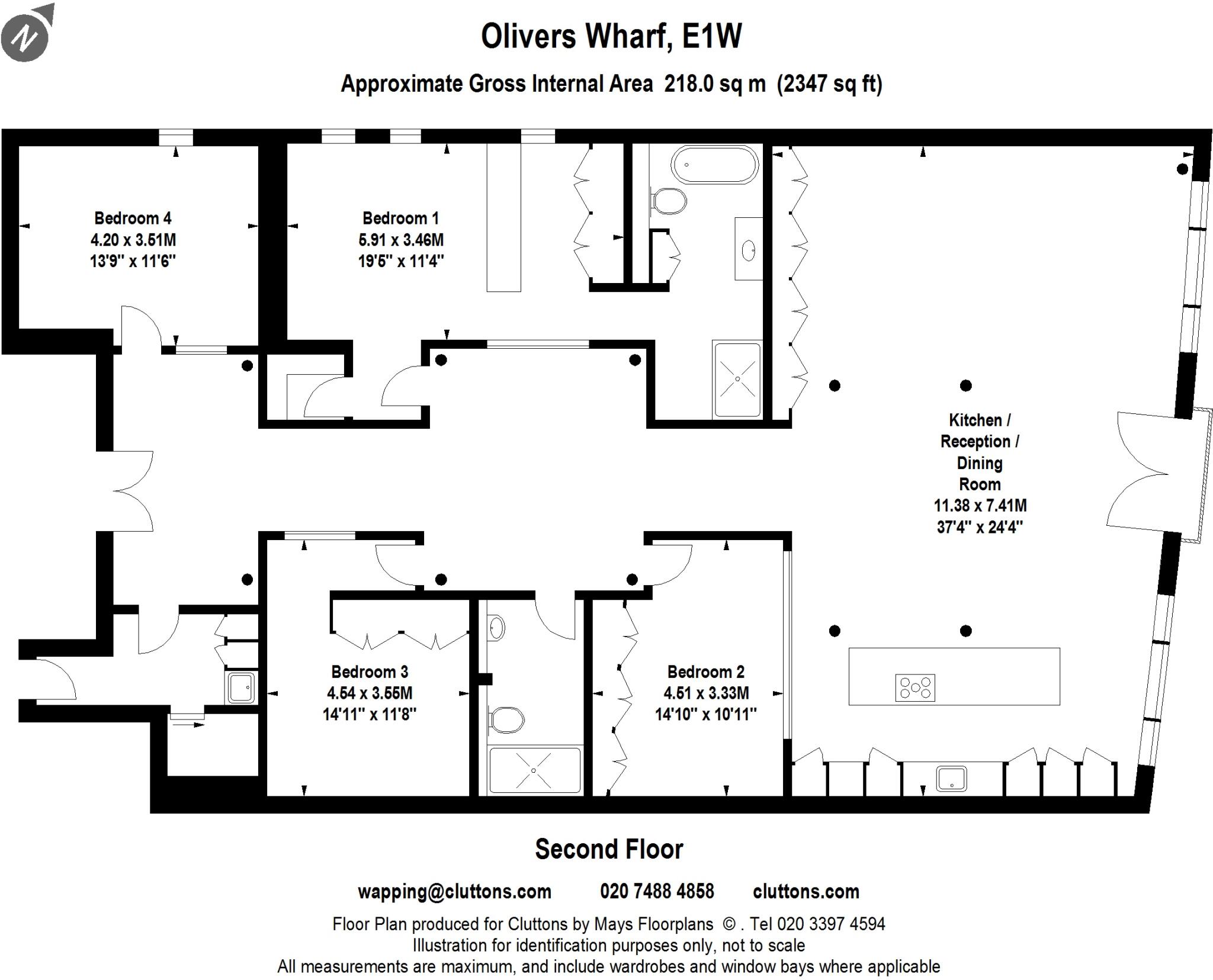 A stunning four bedroom apartment extending to 2,347 sq. ft, forming part of the highly regarded Grade II listed warehouse conversion, Olivers Wharf.
