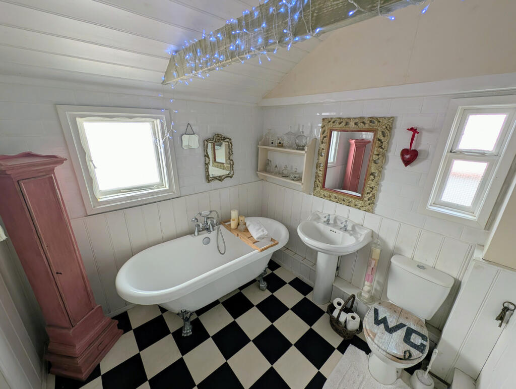 This is a detached property in Shanklin South, Isle of Wight. It features two bathrooms and two bedrooms, with a spacious 1,354.10 sqft of living space. The property includes a garden with a shed and is located near local amenities, including schools and transportation. While the property shows some signs of wear and tear, it is generally in good condition and offers ample living space. The asking price of £325,000 seems reasonable given the location, size, and features of the property.