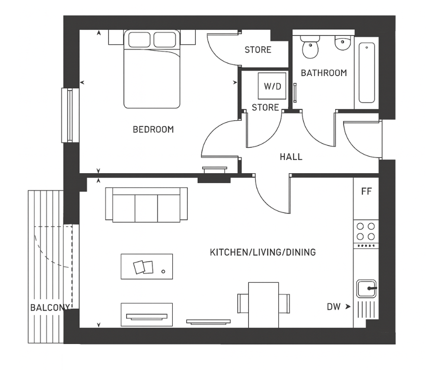 Nine Elms | 1-Bed with Balcony, Pool & Concierge - 652 sq ft Modern 1-bed with sleek kitchen, open-plan living & private balcony. Features a stylish bathroom and double bedroom with built-in storage. Residents enjoy pool, gym, lounge, gardens, meeting rooms & 24/7 concierge.