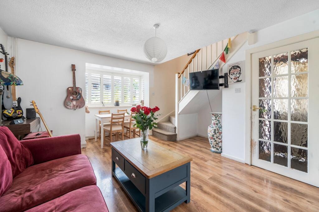 A modern semi detached house tucked away at the bottom of a cul de sac in the popular Uplands area above Stroud town with two bedrooms, a kitchen/dining room, driveway parking and gardens front and rear.
