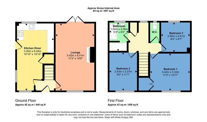 A well maintained semi detached property. The accommodation comprises entrance hall, lounge, dining kitchen, landing, three double bedrooms, bathroom and separate wc. Front garden and good size garden to the rear. No chain.
