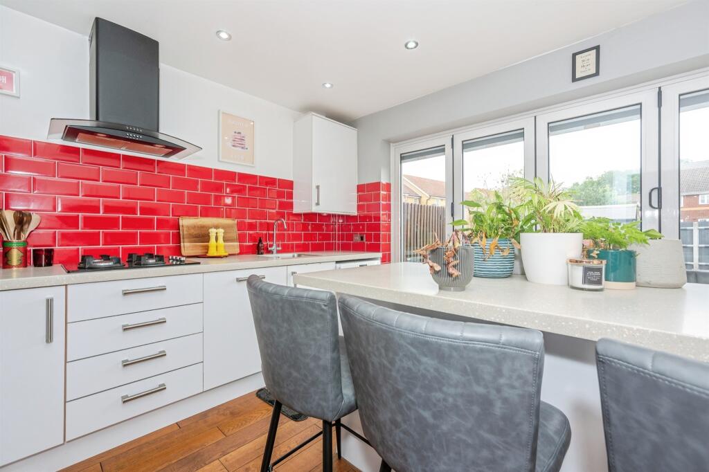 Offering NO UPWARD CHAIN is this much improved three bedroom home located on a popular modern development. Offering a ground floor Wc and an en-suite shower room, this attractive property boasts a stunning refitted kitchen with breakfast island and byfold doors onto the rear garden