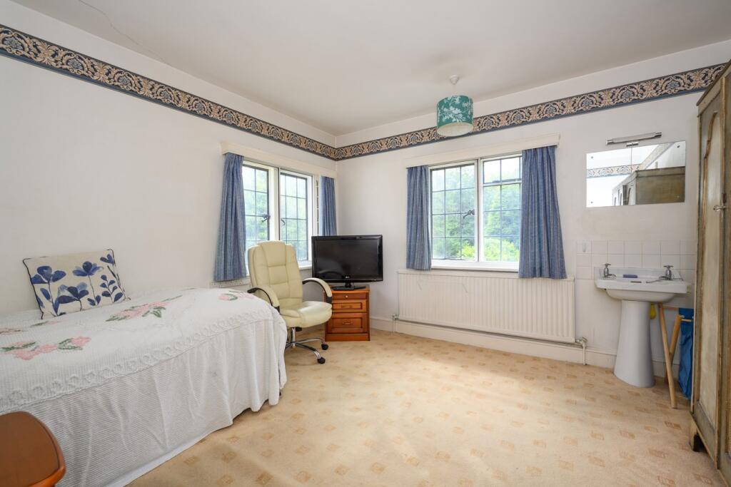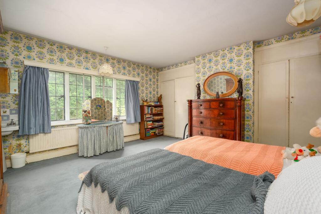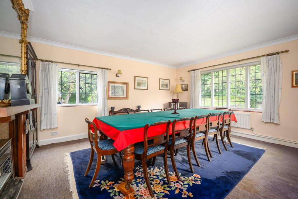 This six-bedroom, three-bathroom property situated on Byfleet Road in Weybridge’s exclusive St George’s Hill estate presents a compelling opportunity for buyers seeking a substantial family home in a prestigious location. The substantial size of the house and land are key advantages. The property’s proximity to good schools and transport links adds further appeal. However, the photos clearly illustrate that the house is in need of extensive refurbishment. The interior design, fixtures, and fittings are noticeably outdated and would require significant investment to bring the property up to modern standards. This needs to be factored into any purchasing decision. While the location and land are high-value attributes the need for significant renovation work could impact the overall value proposition depending on individual buyer priorities and budgets. A detailed survey and costing of potential works would be essential prior to purchase.