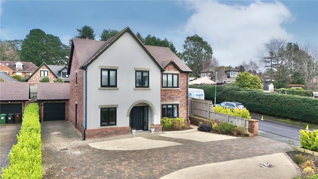 This property in Lower Heswall, Wirral, presents as a modern, well-maintained, and stylish detached house. The images showcase a contemporary interior with a high-quality kitchen, spacious living areas, and en-suite bathrooms. The house appears to be newly built or extensively renovated. The exterior boasts a well-maintained garden and a sizeable paved driveway.