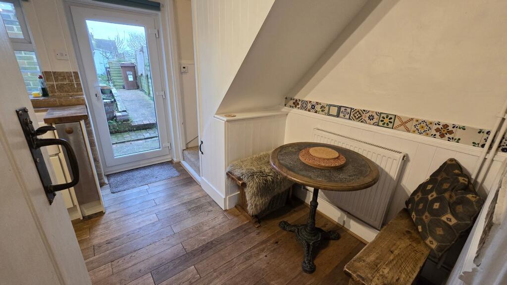 This 2-bedroom, 1-bathroom terraced house located on Church Street in Willingdon, Eastbourne, is presented for sale at £315,000. The property’s interior reveals a recently modernised kitchen and bathroom, with the kitchen featuring contemporary units and appliances and the bathroom presenting a clean and functional space. The property benefits from a working fireplace, which adds a traditional charm to the living space. The living areas are relatively compact, aligning with the property’s modest size of approximately 492 square feet. The property also features a small, manageable rear garden. While the house appears generally well-maintained, certain areas, such as the garden, could benefit from further landscaping or renovation to enhance its overall appeal. The nearby transportation links, including several train stations, enhance the property’s accessibility. The presence of nearby schools, though with varying Ofsted ratings, caters to families. The property’s price should be considered in the context of local market comparisons. While neighboring properties are generally more expensive, this is usually due to larger plot sizes and better features or locations. The property represents a viable option for first-time buyers or those seeking a convenient and manageable property within Willingdon village. Further investigation into the condition of the property, such as a survey, would be advisable for prospective buyers.