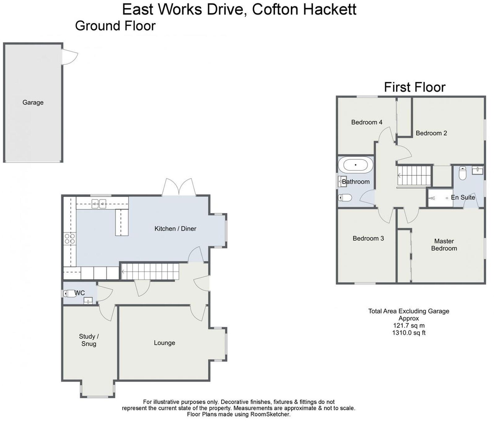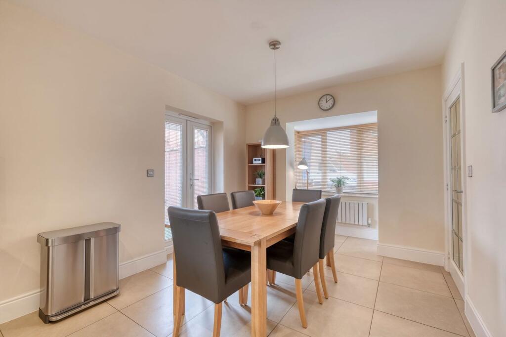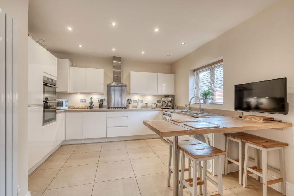 Modern 4-bed detached house in Cofton Hackett, Birmingham, with contemporary kitchen/diner, en suite master bedroom, study, sunny garden, ample parking, and garage.