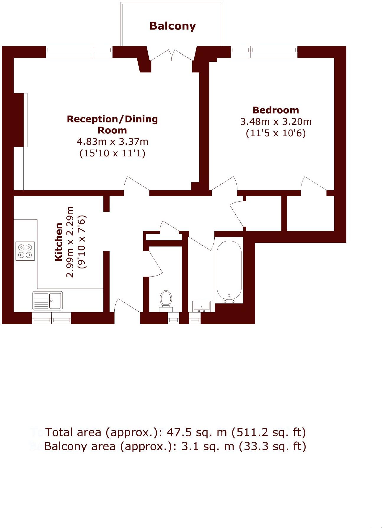 A well-presented one-bedroom flat featuring a great size kitchen with built-in appliances, a spacious open-plan living and dining area, and direct access to a private balcony. The property offers a generously sized master bedroom with built-in wardrobe, a family bathroom, and a separate WC for a...