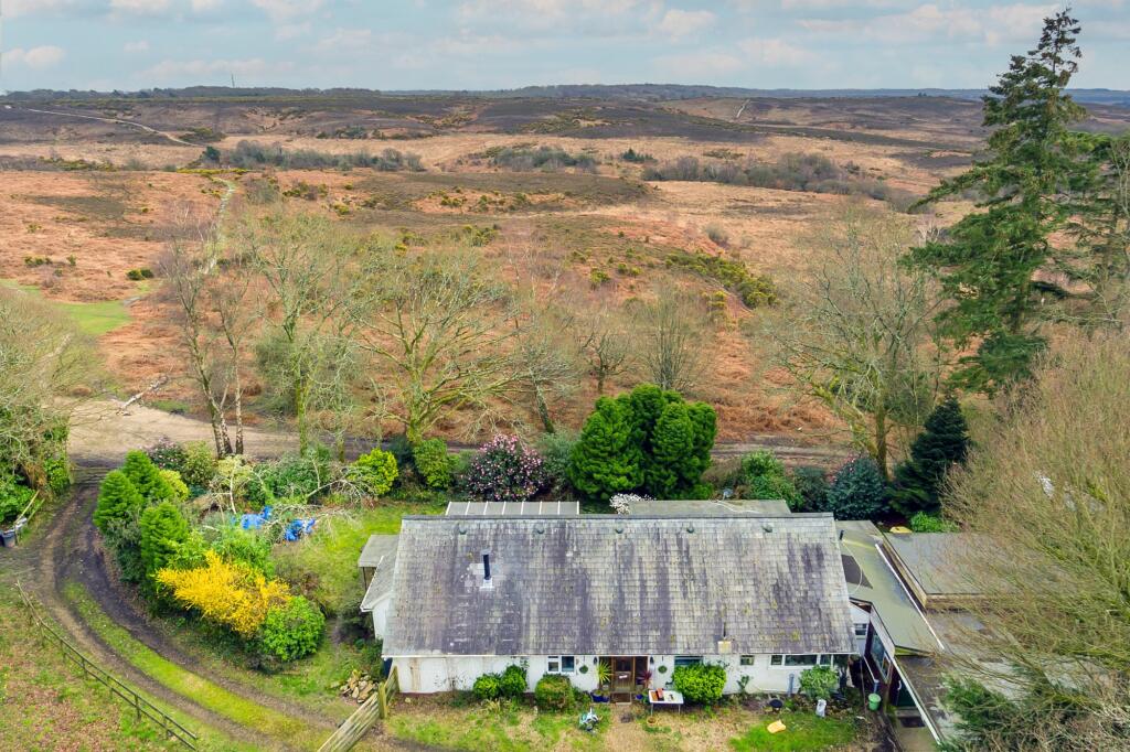 This five-bedroom, three-bathroom chalet-style property in Picket Hill, Ringwood, offers a unique opportunity to live within the prestigious New Forest National Park. The house boasts a large footprint, around 3,386 square feet of living space, spread across multiple rooms, including a spacious living area with a feature fireplace, multiple bedrooms, a kitchen and dining area. The property features a mix of modern updates, alongside other elements in need of renovation, creating a potential for further improvement to a buyer’s taste. The inclusion of outbuildings provides added potential for various uses, subject to necessary planning permissions.