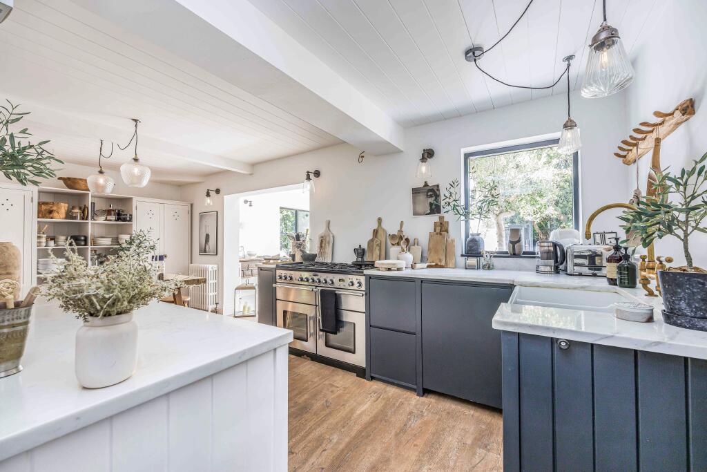 A handsome Georgian detached house of immense charm and character, beautifully presented comprising 5 double bedrooms, 2 bathrooms and 3 receptions including a dining room with vaulted ceiling, overlooking secluded gardens with a mediterranean theme, set in about 0.26 acres, located in the heart ...