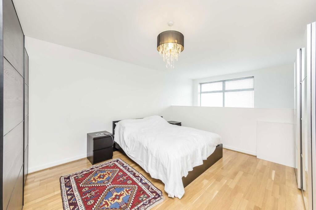 A split level two bedroom apartment with mezzanine style bedroom, open plan reception, private balcony and secure entry.