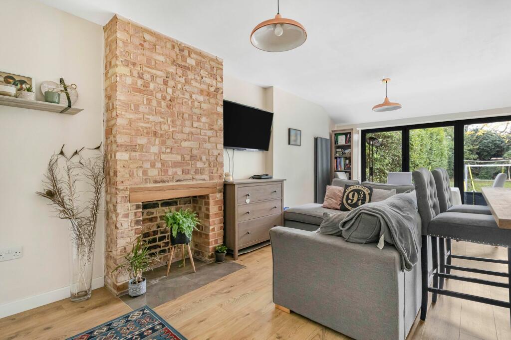 This four-bedroom, two-bathroom semi-detached house situated on Miller Way in Brampton, Huntingdonshire, is presented for sale at £425,000. The property has clearly undergone some renovations and extensions, most notably a significant extension to the rear creating a large, open-plan kitchen, dining, and living area with modern features. This space benefits from bifold doors leading to a patio and the garden beyond. The images reveal a contemporary kitchen with updated appliances and fittings, and the overall style of the house is modern, albeit with aspects retaining characteristics of the original property.