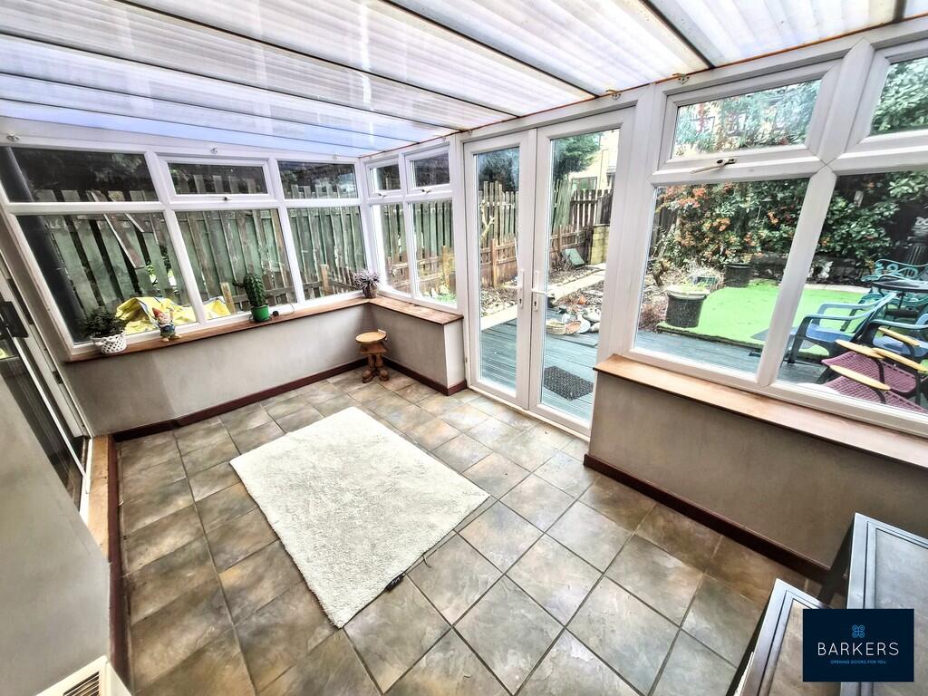 NO CHAIN - Spacious END townhouse with gardens, driveway providing private parking and a garage. Briefly comprises: Entrance vestibule, kitchen, lounge, conservatory, two bedrooms, study, W.C. and bathroom.
