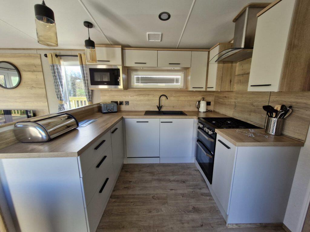 This caravan is located in Falls Park, Ingleton, offering a tranquil setting with views of the surrounding countryside. The interior is modern and well-maintained, featuring a contemporary kitchen and comfortable living spaces. The property includes a spacious deck, perfect for outdoor relaxation and enjoying the scenic views. While the location is relatively remote, its proximity to Ingleton Primary School (2.89km) and the nearby towns of Clapham and Bentham, which offer train connections, could be advantageous for some buyers. The list price of £47,500 appears reasonable considering the condition and amenities, however, further market analysis for similar caravans in the area would be beneficial to confirm this assessment.