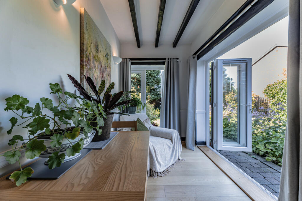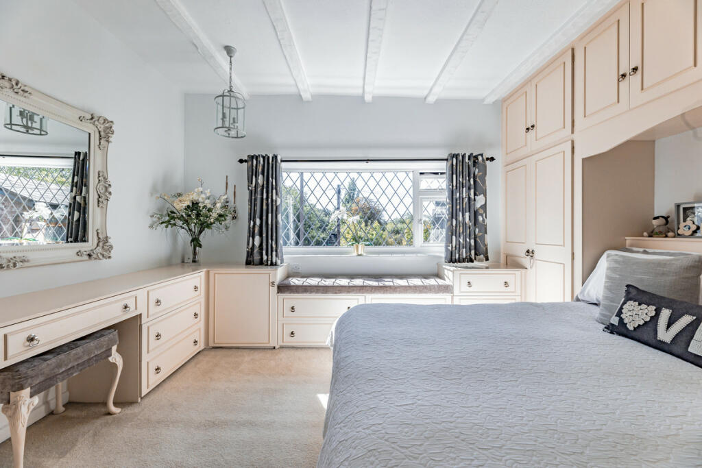 This 3-bedroom, 2-bathroom property located on Ladybridge Road in Cheadle Hulme, Stockport, offers a blend of period charm and modern updates. The property’s character is highlighted by exposed beams and original features within a renovated and well-maintained interior. Photographs reveal a tastefully decorated interior that appears well-cared for, though not extensively renovated.