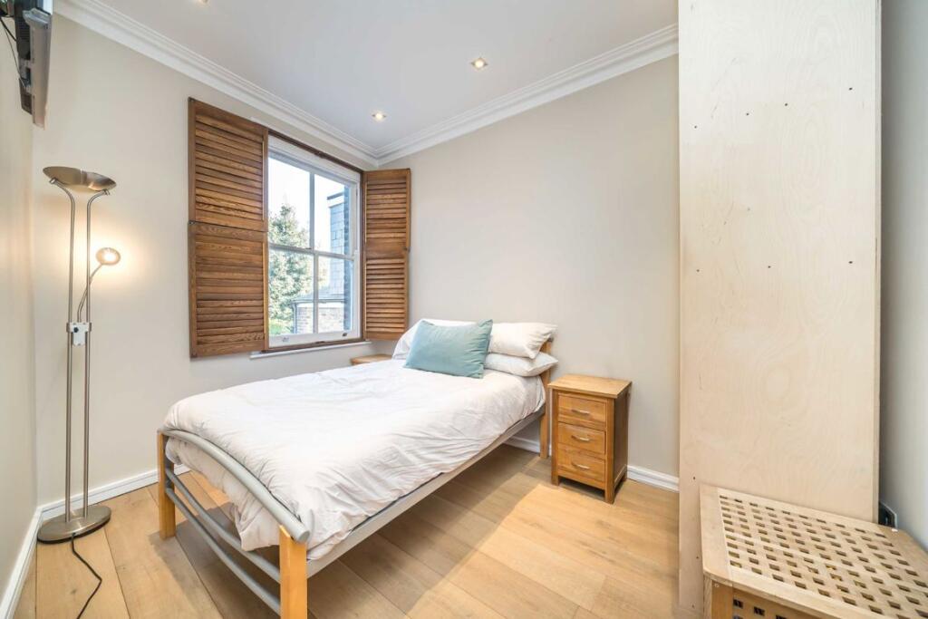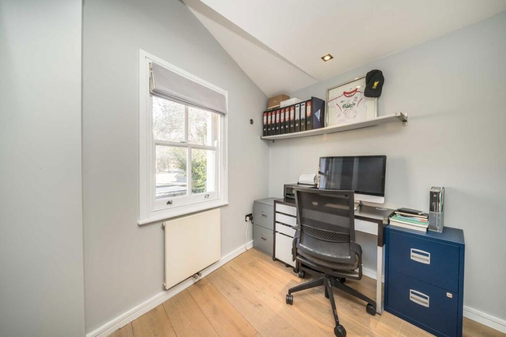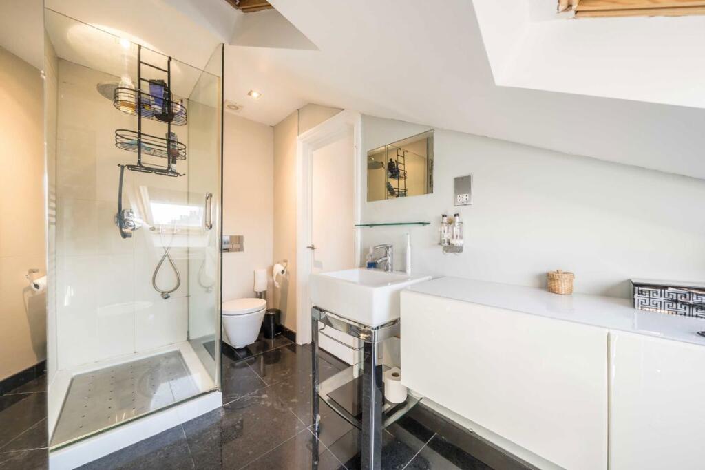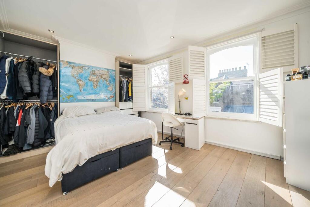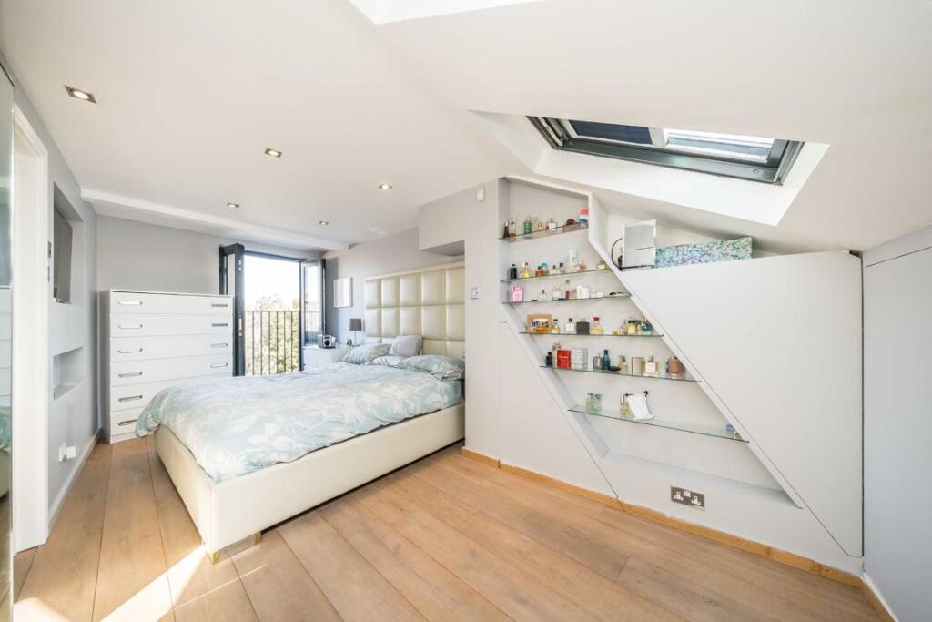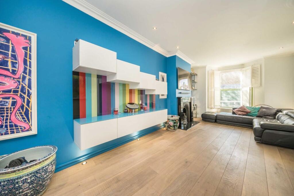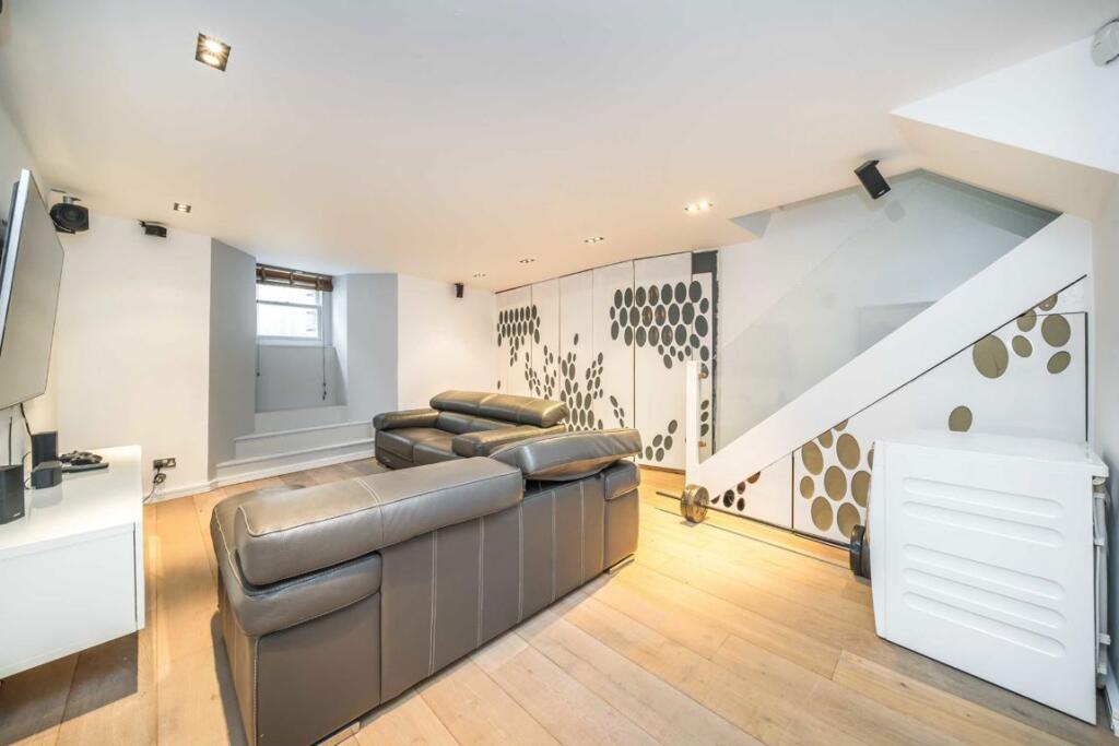 This five-bedroom, two-bathroom freehold house, located in Stoke Newington, boasts key features including an impressive media room, an open-plan kitchen, a loft conversion equipped with an en-suite bathroom and a patio in the back garden, perfect for gatherings.