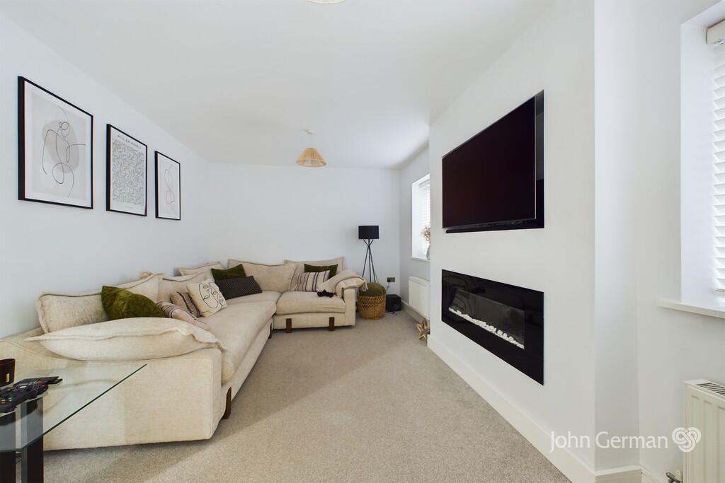This three-bedroom, two-bathroom property located in Rhodeswood Close, Hilton, South Derbyshire, presents itself as a well-maintained and modern home. The photographs showcase a bright, clean interior with a contemporary design and fixtures. The kitchen and bathrooms appear new or recently renovated, contributing to the property’s overall high standard of condition. The property benefits from a modest rear garden with a patio area, perfect for outdoor seating and a small lawned area.